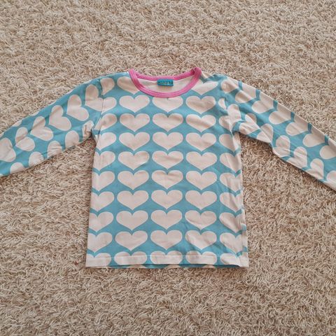 Vaaleanpunainen meandi pusakka koko 110/116. Kunto on tosi hyvä, mutta toisessa hihassa huomasin hieman haaleaa pinttymää ks kuva.