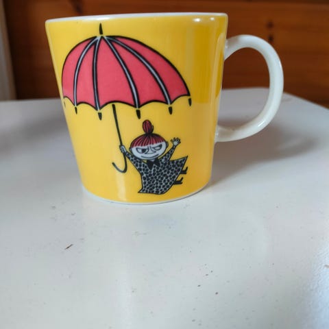 Keltainen pikkumyy muumimuki.
