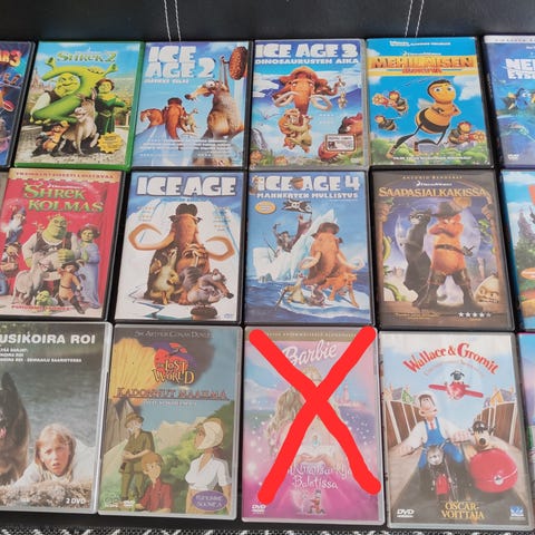 Myydään lasten dvd-elokuvia 0,50€/kpl. Paljon erilaisia. Nouto Akaan Viialasta tai postitus. Kaikki barbie elokuvat on myyty. Myös Monsterhigh vampyyrit vastaan ihmissudet/monsterit määrää, muumi lampunhenki ja viidakkoseikkailu sekä Dragons defenders of berk ovat myyty. Muut ovat saatavilla.