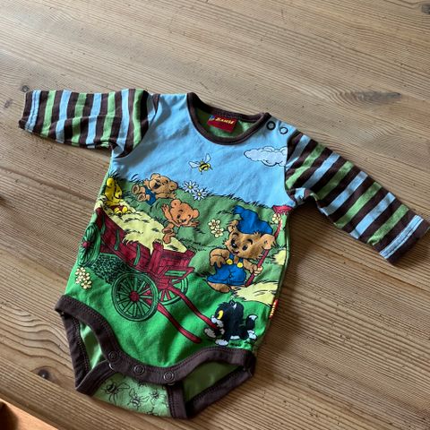 Bamse pitkähihainen body koossa 56. 100% puuvillaa. Painatuksen ääriviivoissa on muutama lohkeama, jotka voi huomata läheltä tarkasteltuna, muuten hyvin siisti.