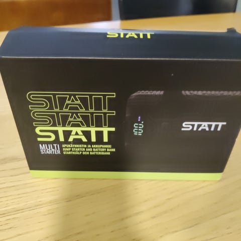 Kevyt, mutta tehokas apukäynnistin. Max virta 4000 A. Starttivirta 2000A. Virtapankki 24000mAh. Valaisin. Ulostulot kuvissa. Uusi.