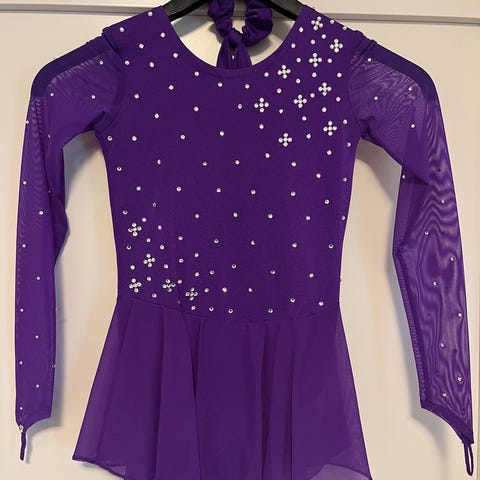 Ice Fairy kisapuku taitoluisteluun. Koko 150 cm/16 (tarkemmat mitat Spirit Skatewearin nettisivuilta: https://www.skatewear.fi/kokotaulukko/). Käytetty muutamassa kisassa ja pidetty hyvin, joten on kunnoltaan kuin uusi. Puvun mukana tulee väriin sopiva musta hiusdonitsi.