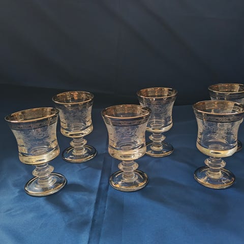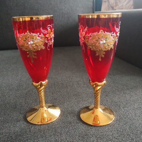 Hienot Muranon käsin koristellut/maalatut kukka kuvioiset snapsilasit 3 kpl, 24 karaatin kultaus.
