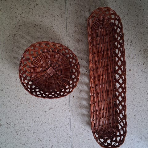 Punottu leipäkori leipien, sämpylöiden ja patonkien tarjoiluun. Leipäkori on luonnonvärinen. Uusi, käyttämätön. Halkaisija 16,5 cm, pohjan halkaisija n. 15 cm, korkeus 2 cm. Eläimetön ja savuton koti. Nouto tai postitus.