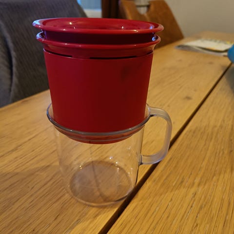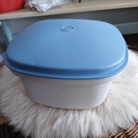Ethän tingi. Kaksi käyttämätöntä Tupperware omenaa ja päärynä. Emme keksi, mihin näitä käyttäisi vaikka kivojahan ne on. Otettu pussista kuvaa varten.