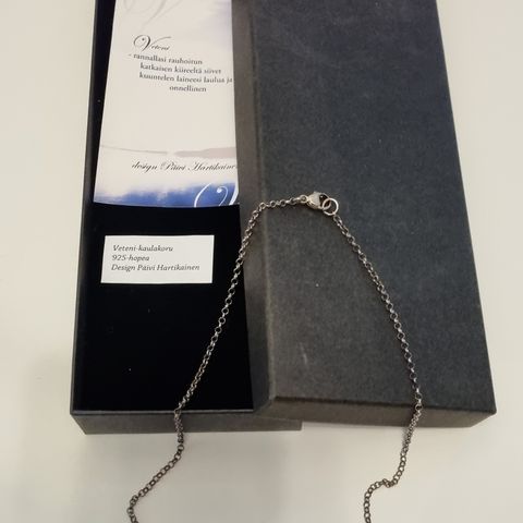 Vaga kaulakoru harmailla makeanveden helmillä ja pienillä pallo-, kukka- ja tähdenmuotoisilla helmillä. Sydän, jossa Vaga-lappu edessä nappulassa, hummerikiinnitys takana. Pituus noin 42 cm 5 cm jatkoketjulla. Tee rohkeasti tarjous.