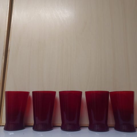 Kahdessa lasissa pienoisia naarmuja näkyvissä. Muutoin lasit ovat erinomaisessa kunnossa.