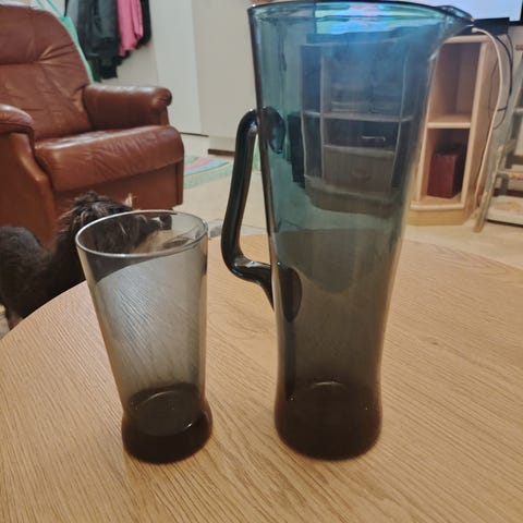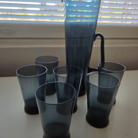 Siniharmaa Sakari Pykälän Riihimäen Lasille suunnittelemat Milano lasit.