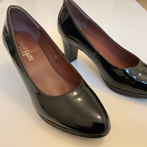 Vaalean ruskeat juhlakengät. Korko 8,5 cm.