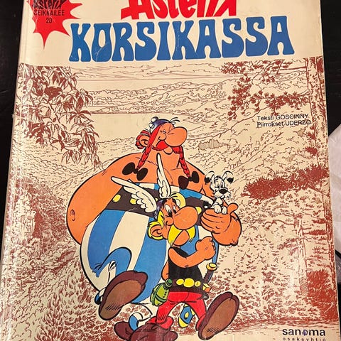Asterix-kirjat, kuvanmukaiset, paljon luetut, mutta kaikki sivut tallessa.