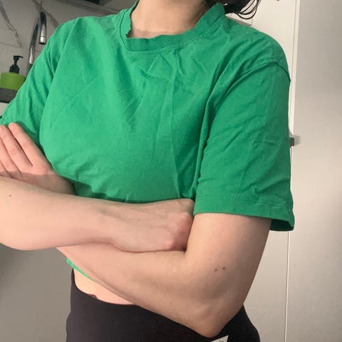 Sininen Paita, koko S, materiaali puuvillaa, mitta kainalosta kainaloon 46 cm edestä mitta, mitta olalta helmaan 61 cm, ehjä.