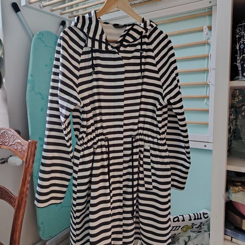 Marimekon uudenveroinen musta-valkoraidallinen Jalava sadetakki