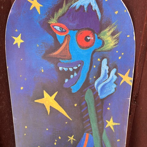 Sims retro lumilauta. 1510 Blade ATV 1989 Neon Black 151. Snowboard.INC. no 026531. Tom Sims (1950-2012)/Terry Kidwell, The Godfather of Freestyle. Samoja ovat Vintage Snowboard Museossa USA:ssa. Keräilykappale