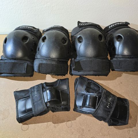Suojainsetti. Polvi-, kyynär- ja rannesuojat esim. rullaluisteluun. Pari kertaa käytetty. Kolhimattomat. Merkki Salomon.