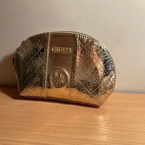 Guess kiiltävä musta meikkipussi /pikkulaukku, mitat 22,5 cm x 13 cm x 4 cm. Siistikuntoinen, vähän käytetty.