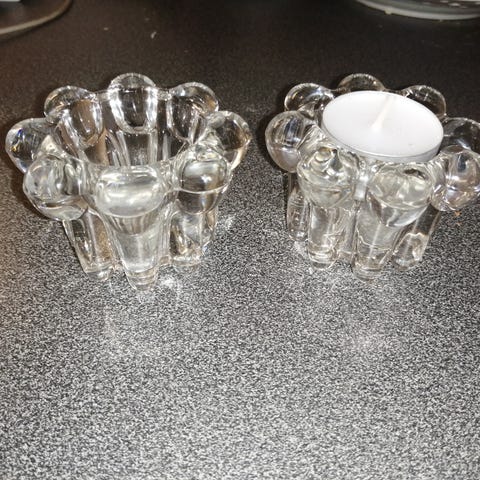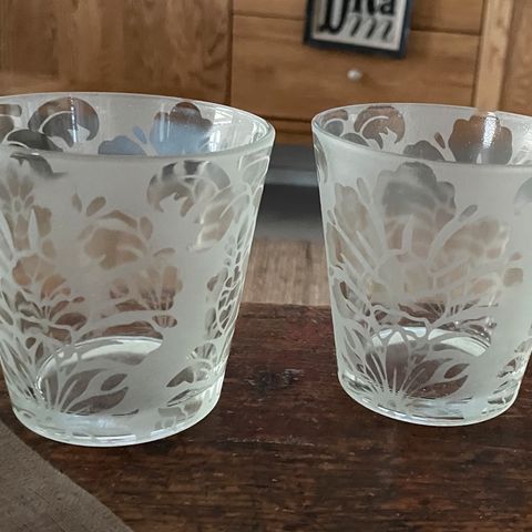 Kauniit lasit tuikuille, 4 kpl. Hinta yhteensä 4, noutaen. Kauniita kynttilän niissä palaessa.