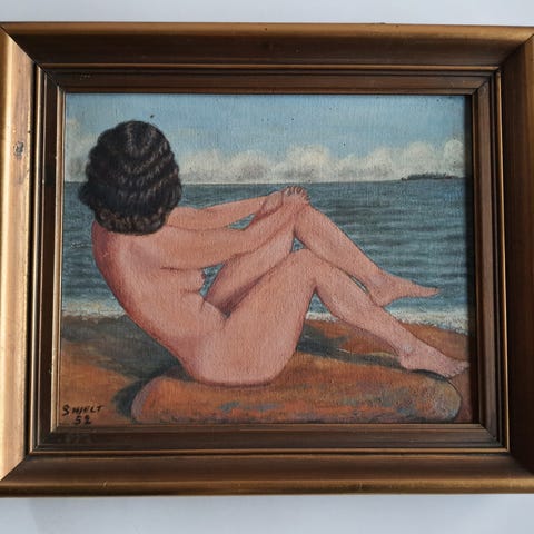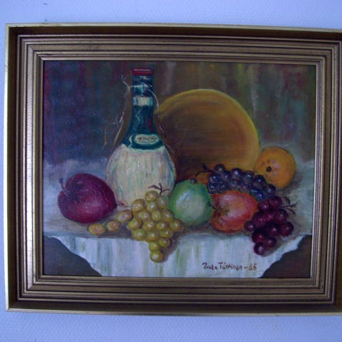 luostariaiheinen maalaus vuodelta 1987. Taidemaalari Elsa Mäkelän maalaus.