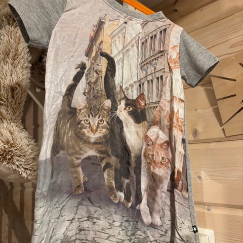 Molon käyttämätön kissatunika, koko 86/92. Laput poistettu, mutta jäänyt kaappiin odottelemaan. Kulkeutuu Masku-Raisio-Turku-akselille omien menojen mukaan. 15 euroa noudettuna, postitus postikuluja vastaan.