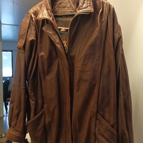 Munderingskompagnietin (MDK) nahkatakki 100% nahkaa. Takin nahka kuuluu olla vähän ”rypyssä”. Pieni koko 38. Merkkiä myy mm Boozt, tämä ostettu Ruotsista. Käyttämätön. Postikulut lisätään hintaan.