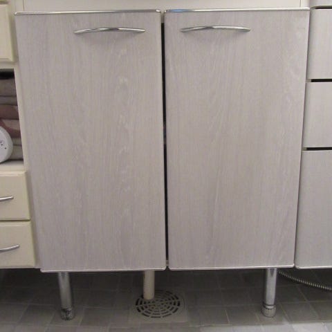 Asentamattomat valkoiset kaapin ovet.