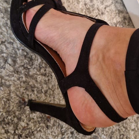 Ihanat 6 cm:n kiilakorolla varustetut ruusukullan väriset nahkasandaalit. Sopivat hyvin esim. kaikenlaisiin juhliin. Sandaalien sisäpituus on 24,5 cm ja niissä on kapea lesti. Leveys päkiän kohdalta 8 cm.