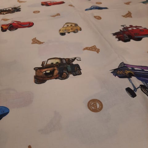 Kaksi autoaiheista puuvillakangasta. Yhden kankaan koko on 50 cm x 100 cm. Myyn kankaat settinä, yhteensä 14 e. Nouto Munkkivuoresta. Voin myös postittaa (ostaja maksaa postikulut).