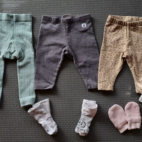 Pehmeä trikoosetti (body ja housut). Muuten siisti ja ehjä, housujen haarassa joku melko huomaamaton pieni nuppineulan kokoinen reikä. Molemmat puuvilla-elastaania. Koko 56