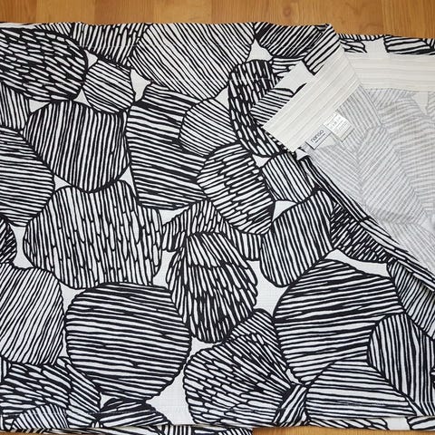 Kaunis Nanson kappa .. täysin uuden veroinen.. käynyt ikkunassa hetken.. keltainen pohjaväri ja valkoisia isoja palloja.. pujotuskuja.. pituus 250cm ja korkeus 60cm..