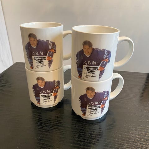 Myyn kuvanmukaiset Arabian Forte Jari Kurri mukit,2kpl.Hinta 20euroa/kpl tai yht.35euroa