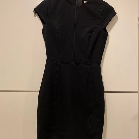Myydään H&M -hyväkuntoinen, hihaton, suoralinjainen ja vuorillinen kotelomekko. Kapea malli. Mekossa napit kokopituudelta. Koko 34