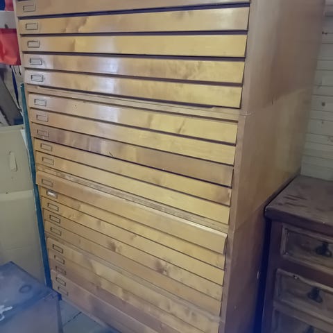 G.W. Sohlbergin arkistokaappi. Kunto näkyy kuvasta. Lähtee irti ”telineestä”. Avain ei tallessa.