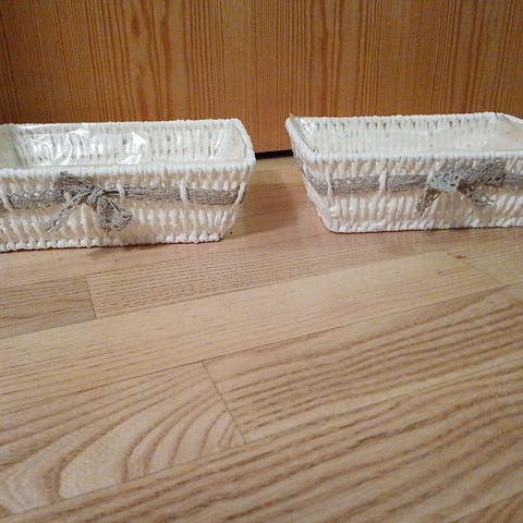 Ruskean korin pituus 40 cm, vihreän 30 cm. Käytä leipä-, vihanneskorina tai keksi muuta käyttöä. Edullisesti, voit ostaa myös yhden.