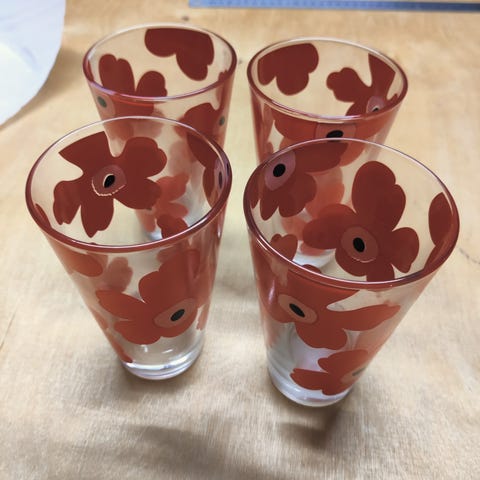 4 kaunista ja ehjää aromilasia, tulppaanimalliset.