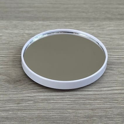 Kaksiosainen jämäkkä kiinnimenevä (meikki)peili, matkapeili omassa kotelossa.