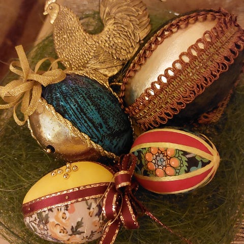 Vihreitä (2kpl) ja keltaisia (8 kpl) huopaisia hauskoja pääsiäiskukkoja pääsiäismunien vartijoiksi. 4 kpl vitosella.