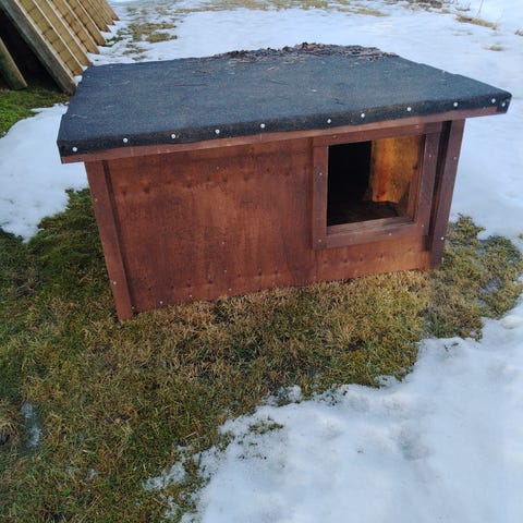 M: Myydään koirankoppi ja peti.