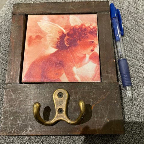 Vanha kuparinen ja hienosti patinoitunut kaksi koukkuinen pikkunaulakko, tuohivirsut.