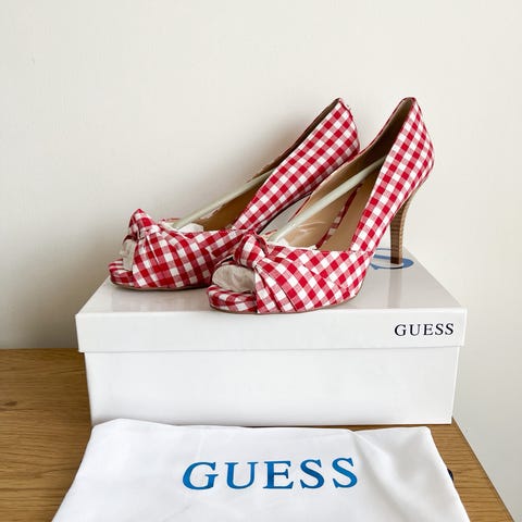 Kuin uudet upeat nahkaiset Guess korkokengät, koko 40, korko 10 cm, väri fuxia. Aidot nahkakengät muokkautuvat sinun jalkoihisi toisin kuin muovikengät, jotka eivät jousta mihinkään suuntaan.