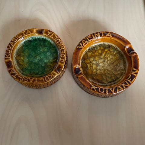2 kpl pietä tuhka kuppia Suomen Yhdyspankin logolla.halk. 7,5cm Hinta 10e yht.