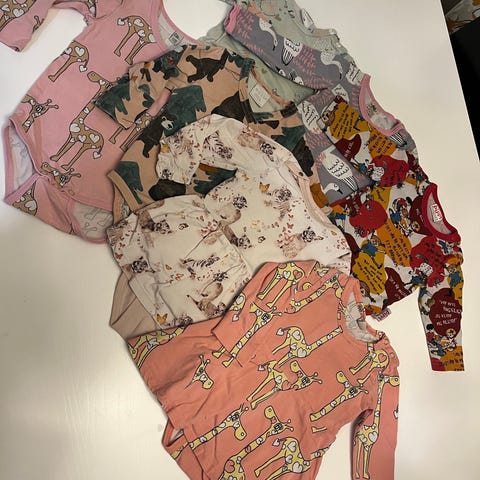 Myydään 9 bodya, joista 3 on kietaisubodya, 5 olkapääneppareilla ja 1 niskaneppareilla.