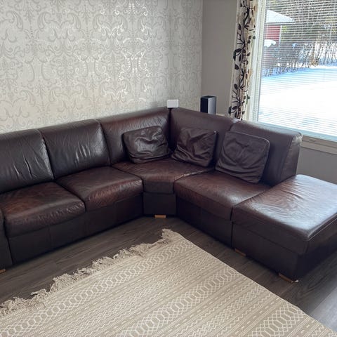 Maskusta ostettu suuri, tukeva, laadukas Belluksen kulmasohva. Sävyltään musta. Siisti kunto.