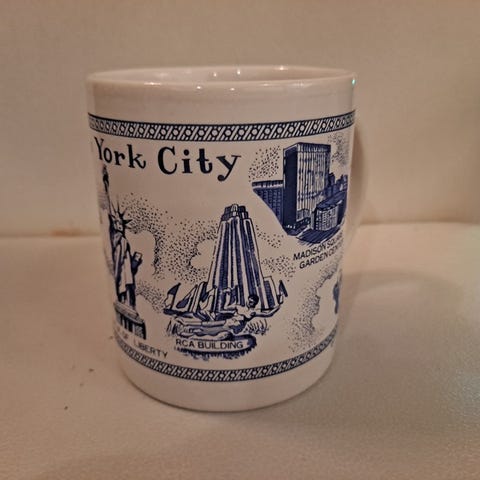 Käyttämätön muki. Muuttaa väriä kuumien juomien vaikutuksesta. Posliinia.