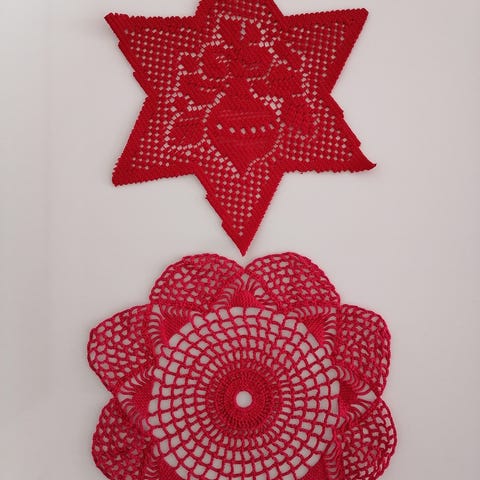 Jouluaiheinen pitsiliina, pöytäliina. Valkoinen.
