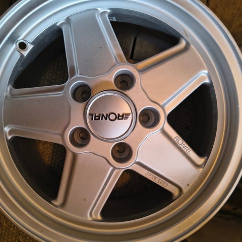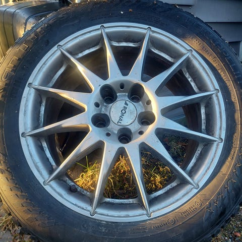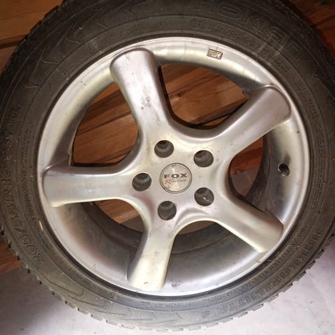 Myydään kuvan vanteet kesärenkailla. Kuvissa näkyvät jäljet vain yhdessä vanteessa!