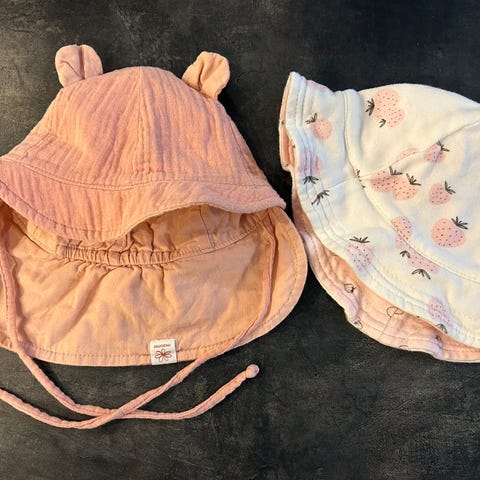 Myydään kaksi suloista Hm merkkisiä kesähattuja tytölle. Valkoinen on uusi ja siinä on laput vielä kiinni. Koko on 56 cm. Vaaleanpunainen on kokoa 68 cm. Se on täysin moitteettomassa kunnossa. Myyn vain yhdessä! Nouto tai postitus, kulut ostajalle!