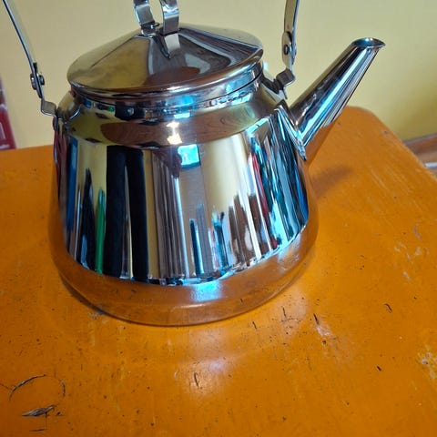 Opan teräspannu, käyttökulumaa. Käy hyvin vaikka nokikahvipannuksi. 1,5L