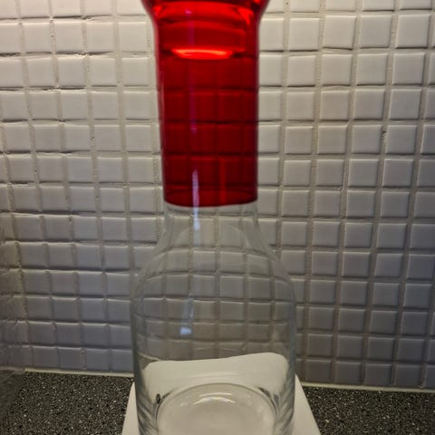 Myydään Sagaform lasinen snapsikarahvi lasikorkilla. Korkeus 15,5cm