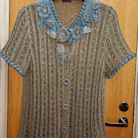 Kaunis musta CARLO COLUCCI-merkkinen neuletakki, jonka materiaali on 90%villa/20%kasmirvilla. Neuleessa on kaula-aukon ja edustan reunoilla ruutukankaasta tereet, myös edustassa on samasta ruutukankaasta kukkakuvio. Koko 42.Pituus niskasta helmaan 63cm. Kainalo-kainalo takaa mitattuna 54cm. Neule on käyttämätön