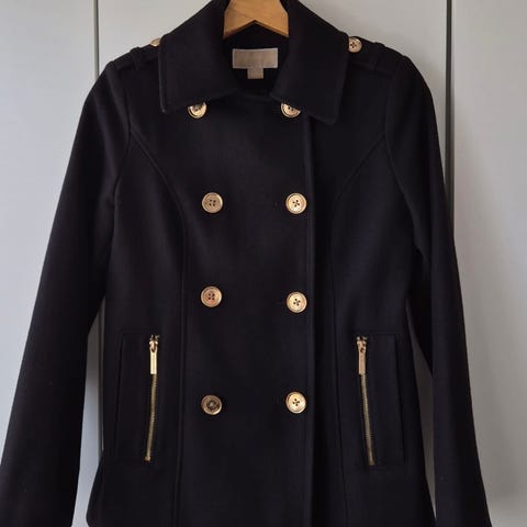 Todella vähällä käytöllä ollut musta villakangastakki kokoa xs. Todella nätit yksityiskohdat vyön päissä.
