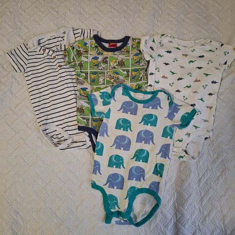 5 kpl Carter's merkkisiä lyhythihaisia bodyja. Ostettu Zalandosta. Hyvässä kunnossa. Käytetty muutamia kertoja ja pesty hajusteettomalla pesuaineella. Kapeahkoa kokoa, kokomerkintä 9m. Vastaa todennäköisesti kokoa 74.